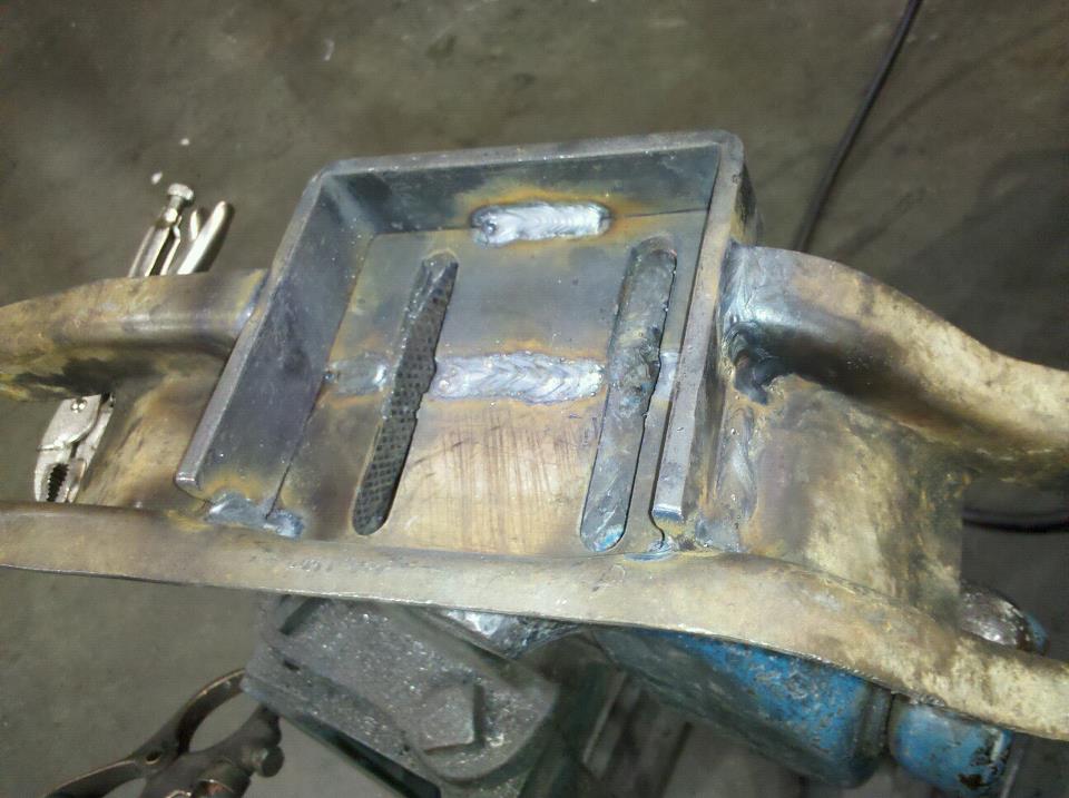 Transmission crossmember I modified to install a Borg Warner overdrive 4 speed in my car.