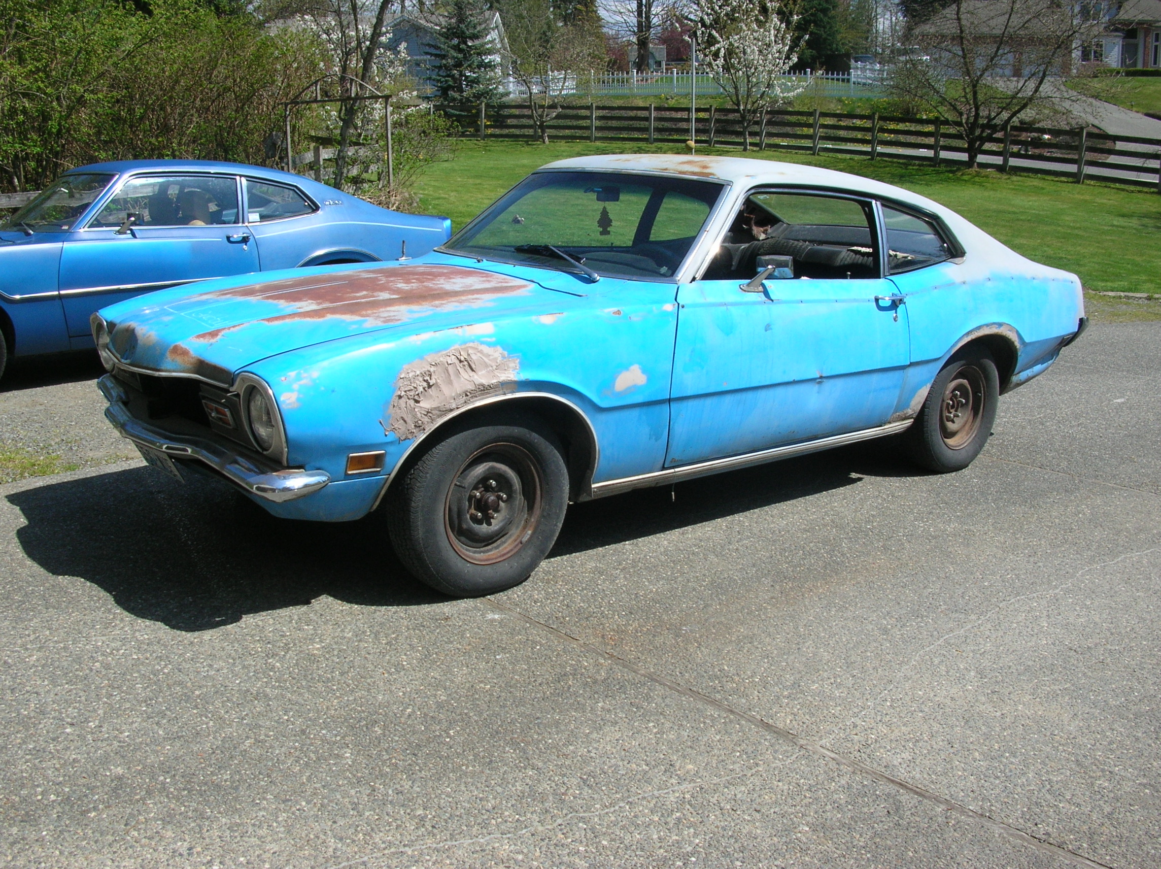 Great starting point for a build project!! I see 2 doors, small bumpers, and 5 lug nuts!! That paint looks more sun baked than rusty, probably a solid car underneath. Must be a western car.