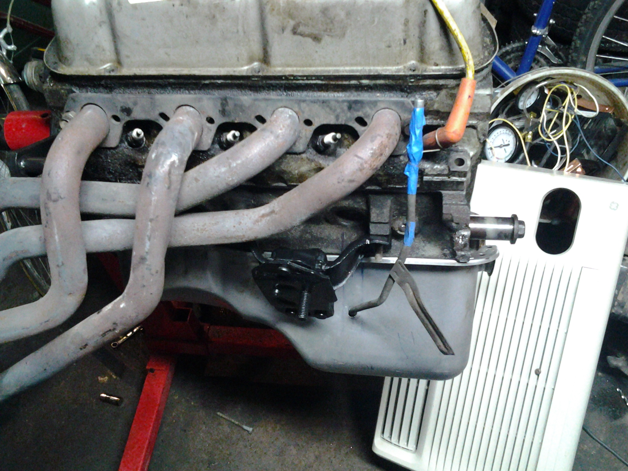 Home made front sump tubefor efi on 88 roller block.(using old tube for mock up before welding in new tube.)